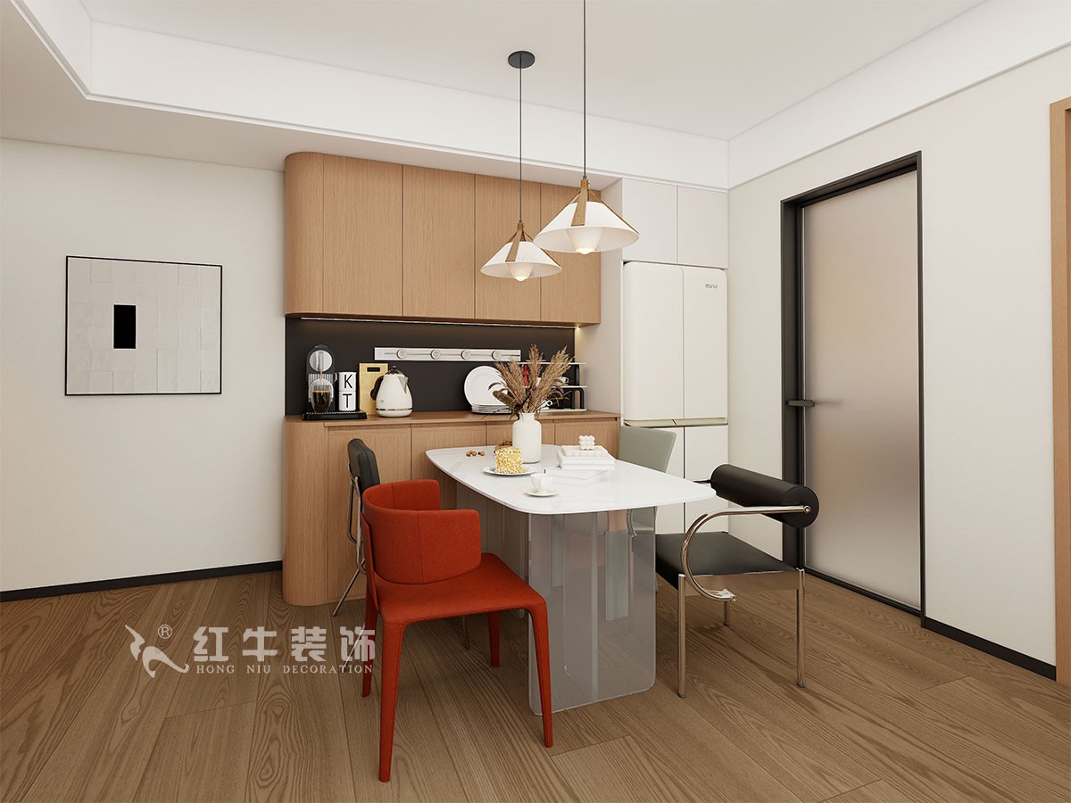 餐廳說明:餐邊柜擴充了廚房儲物的不足,也提升了適合家庭的生活質量。