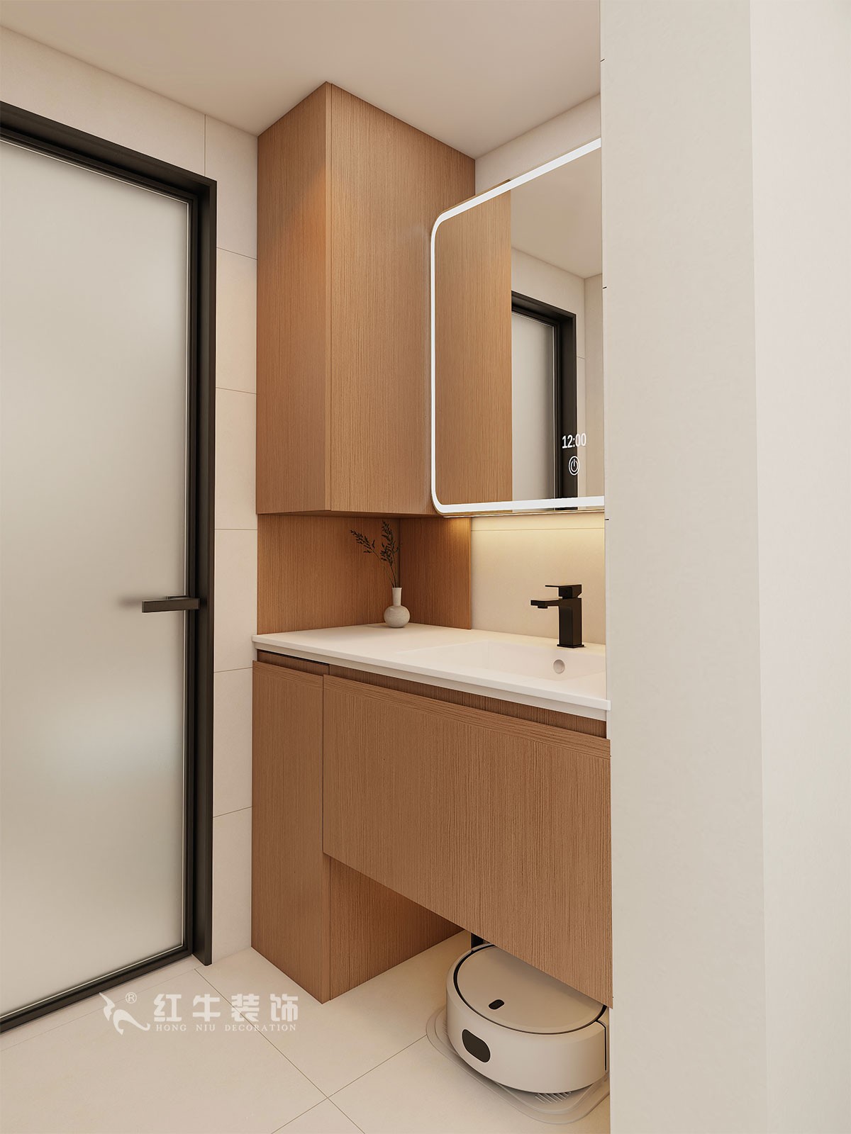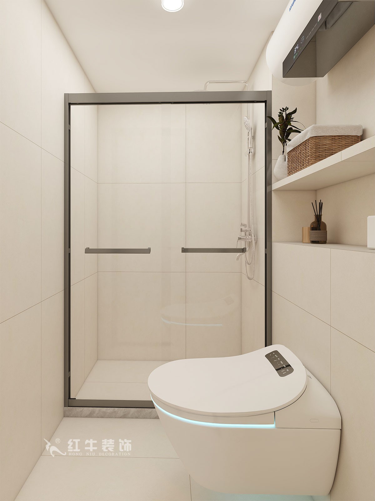 衛生間說明:干區選擇整體色彩搭配干凈、大方,選擇大尺寸白色瓷磚上墻,氛圍感溫馨感滿滿。