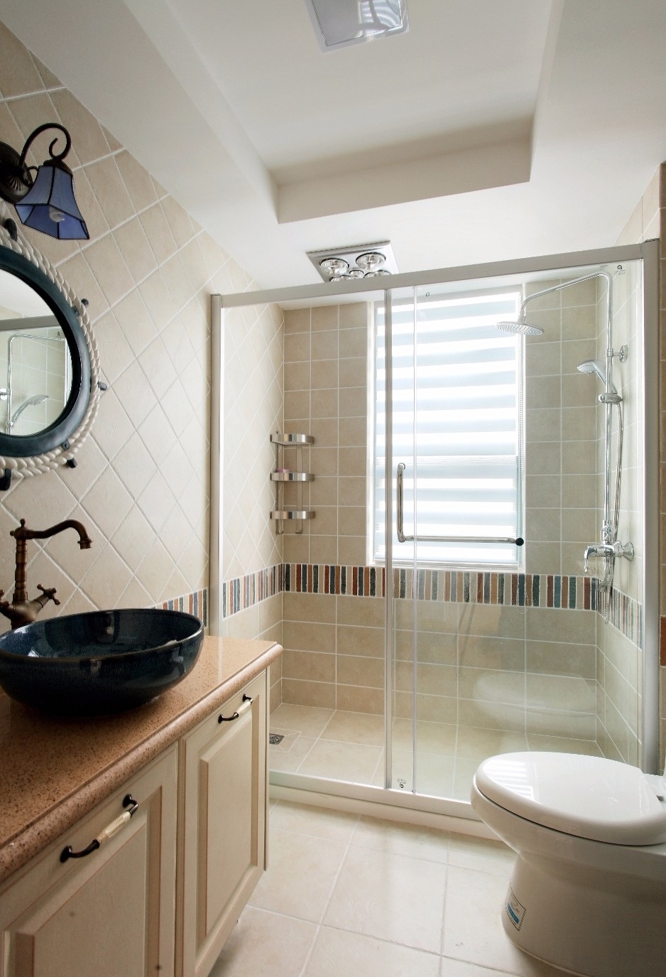 從整個戶型來分析,空間分割是合理的,但是細節處有諸多不足,入戶的空間過于狹長,有點空間浪費的意思,故將此空間一分為二,以此更好的利用起來。入戶采用拼花樣式,跟頂部的造型結合起來,讓入戶有個亮點。