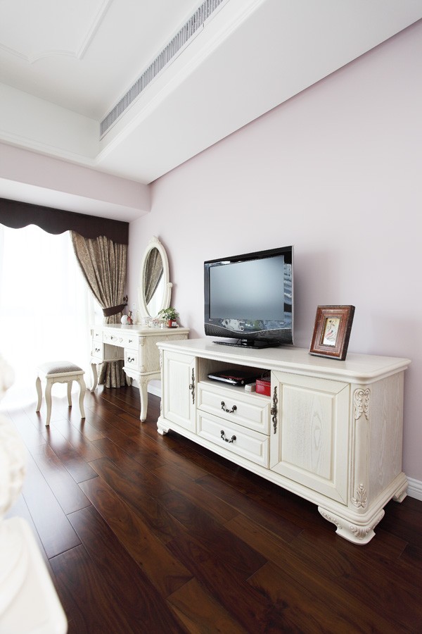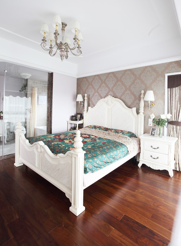 臥室里面也是用歐式線條跟浮雕地板達到歐式的格調。