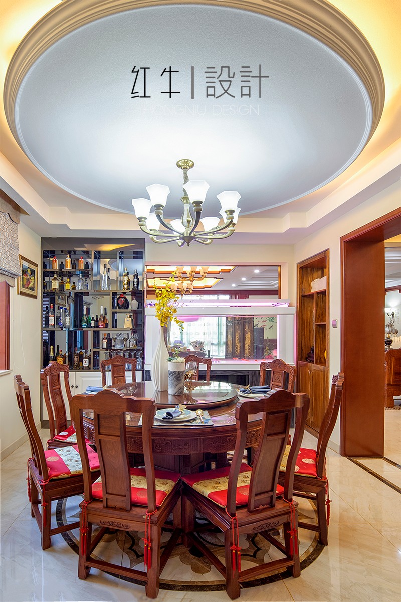 整套方案為中式古典風格,以中國傳統古典文化為背景,營造極富中國浪漫情調的生活空間,紅木,青花瓷,紫砂壺以及紅木工藝品體現了濃郁的東方之美。客廳使用了富有中式的屏風,通過新的分隔方式,展現出中式家居的層次,設計師以簡約的造型為基礎,添加了中式元素,是整個空間感覺更加豐富,大而不空,厚而不重,有格調又不顯壓抑。