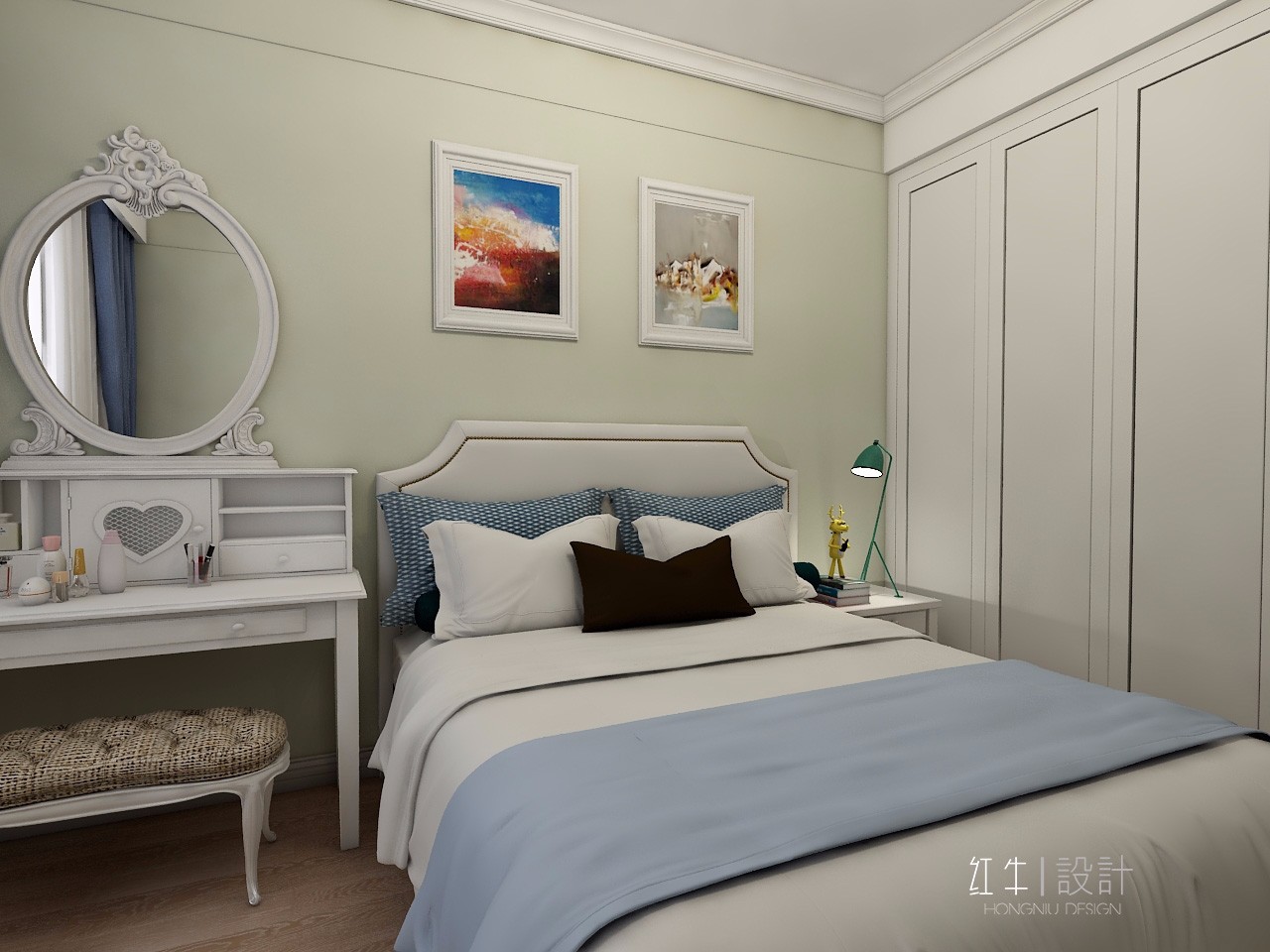 這間是次臥,梳妝臺是必不可少的家具,它的造型優雅、還散發著一種浪漫氣息。