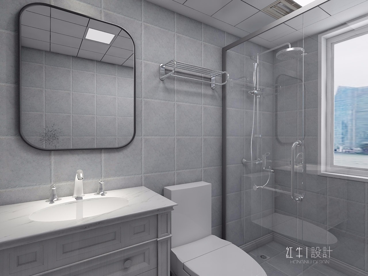 在這間衛生間里,第一眼就注意到了圓角的矩形浴室鏡,使用這樣的鏡子可以避免被邊角弄傷,而且這樣邊角也不容易磨損。