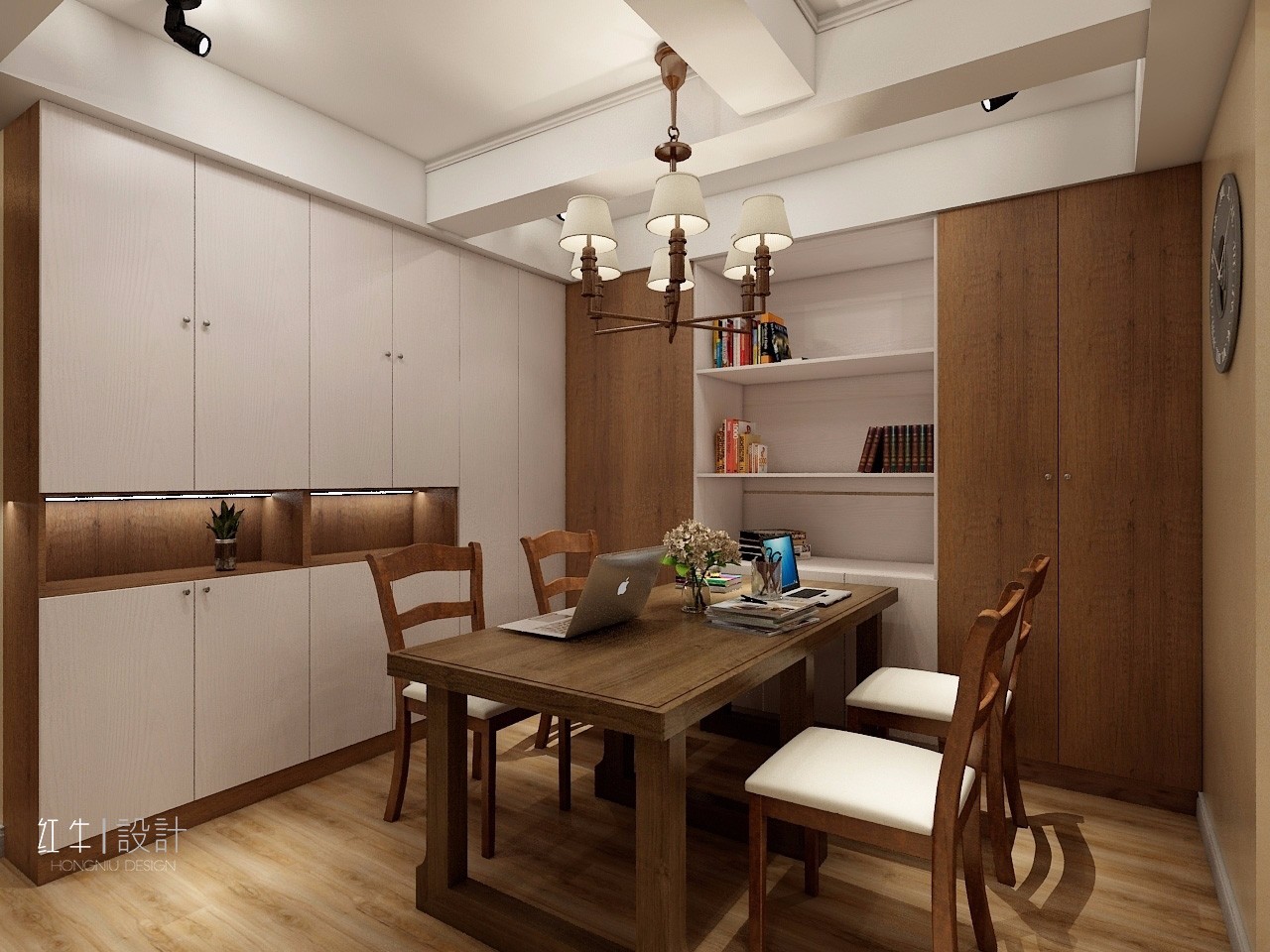 在布局上,餐廳和辦公空間的完美結(jié)合,客廳的裝飾柜,不但解決了書籍?dāng)[放的位置,同時(shí)神出來的一截恰好就是進(jìn)門的玄關(guān),也破解了風(fēng)水上的忌諱。