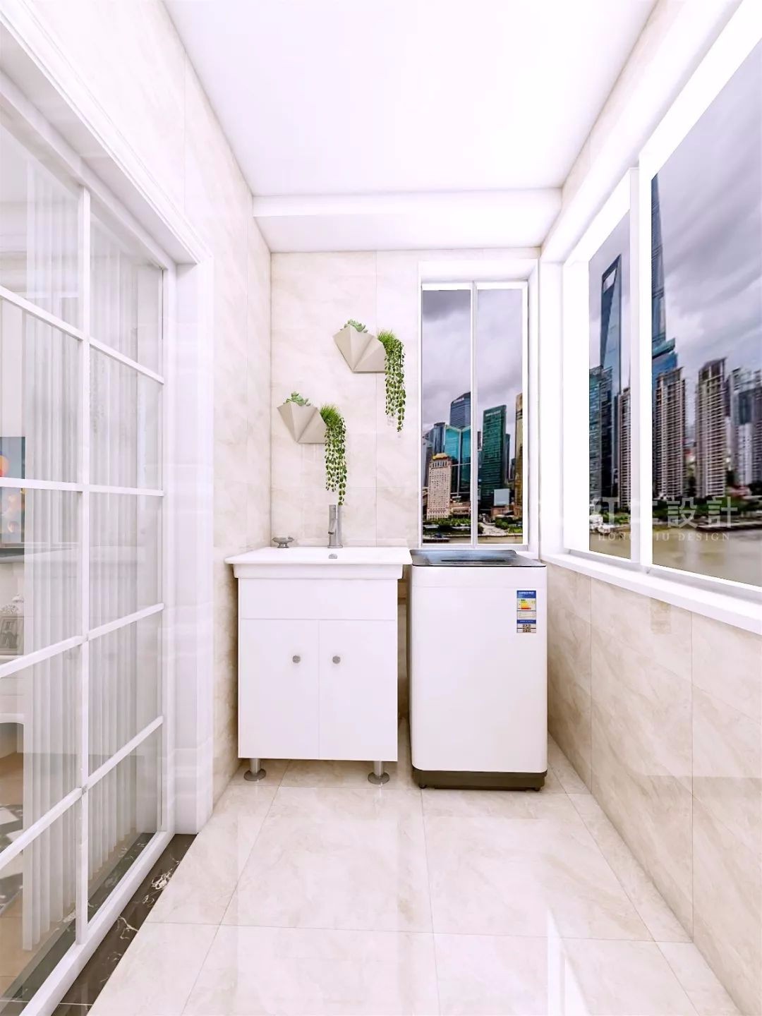 陽臺設計簡單大方,但也有別出心裁的地方。把綠植掛在墻上,節省空間的同時又美化了墻面,使陽臺呈現出一派生機盎然的景象。