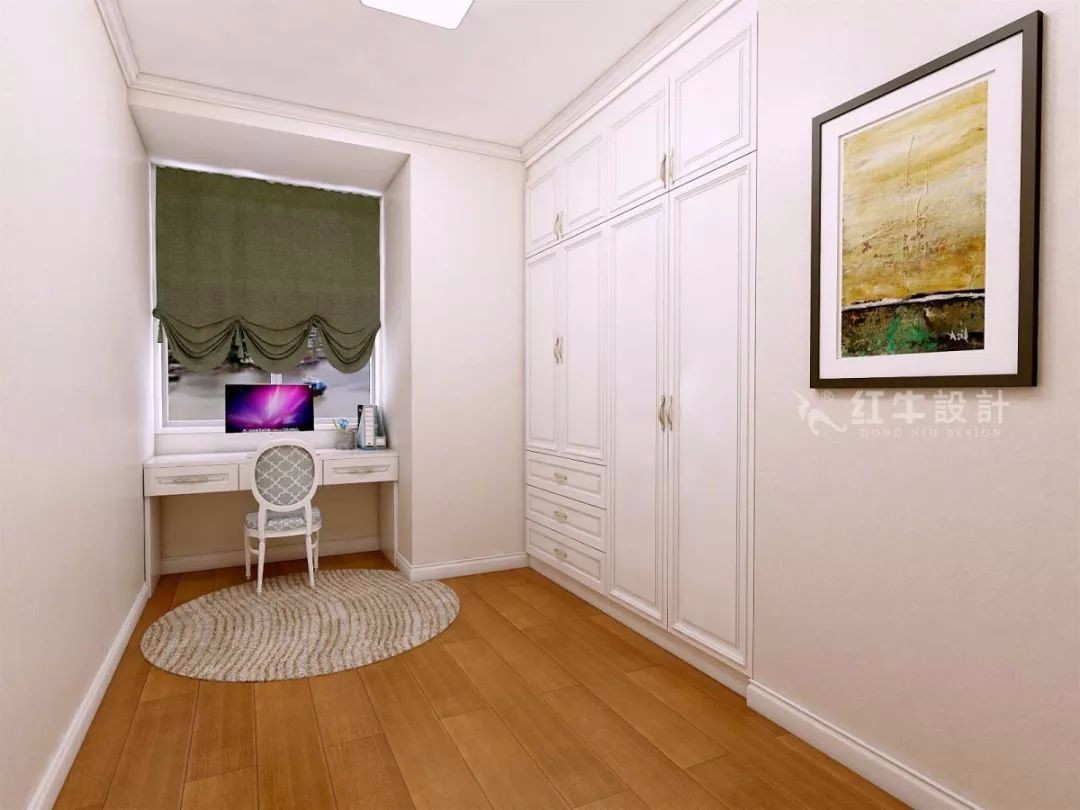 書房以清新的色彩營造出大方爽朗的空間,一張小書桌就能夠滿足業主的學習閱讀需要。