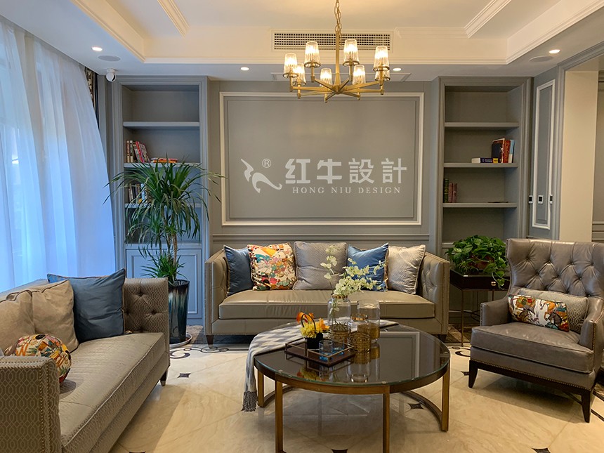 本案的設計風格為現代美式輕奢。以現代簡練的裝飾語言,配合高品質的軟裝搭配,輕松舒適的同時,不乏高品質的生活體驗,創意性的結合了美式與現代元素,以輕松舒適的淺灰色,為業主打造了一個獨特的生活空間。