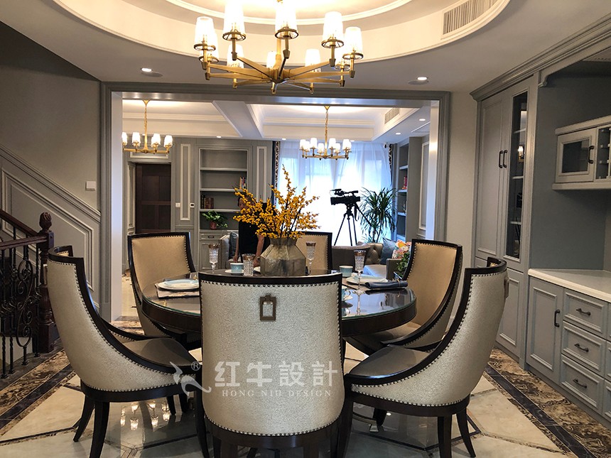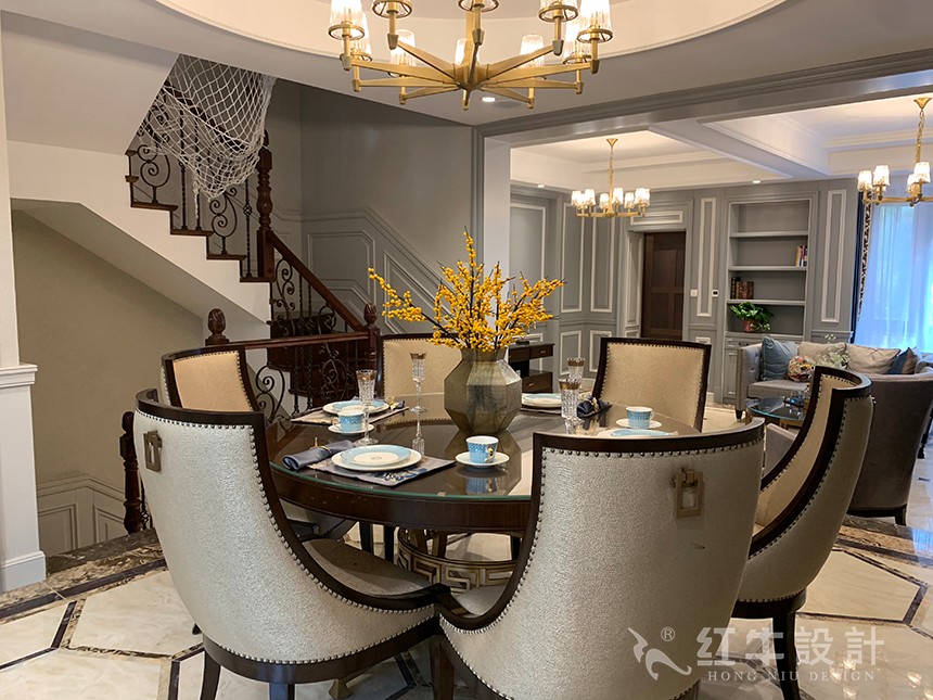 本案的設計從簡單到復雜、從整體到局部,精雕細琢、鑲花刻銀,都給人一絲不茍的印象。一方面保留了材質、色彩的自然風格,讓人感受到傳統的歷史痕跡與渾厚的文化底蘊。同時又摒棄了過于復雜的肌理和裝飾,簡化了線條。將懷舊的浪漫情懷與現代人對生活的需求相結合,兼具華貴典雅與時尚現代。