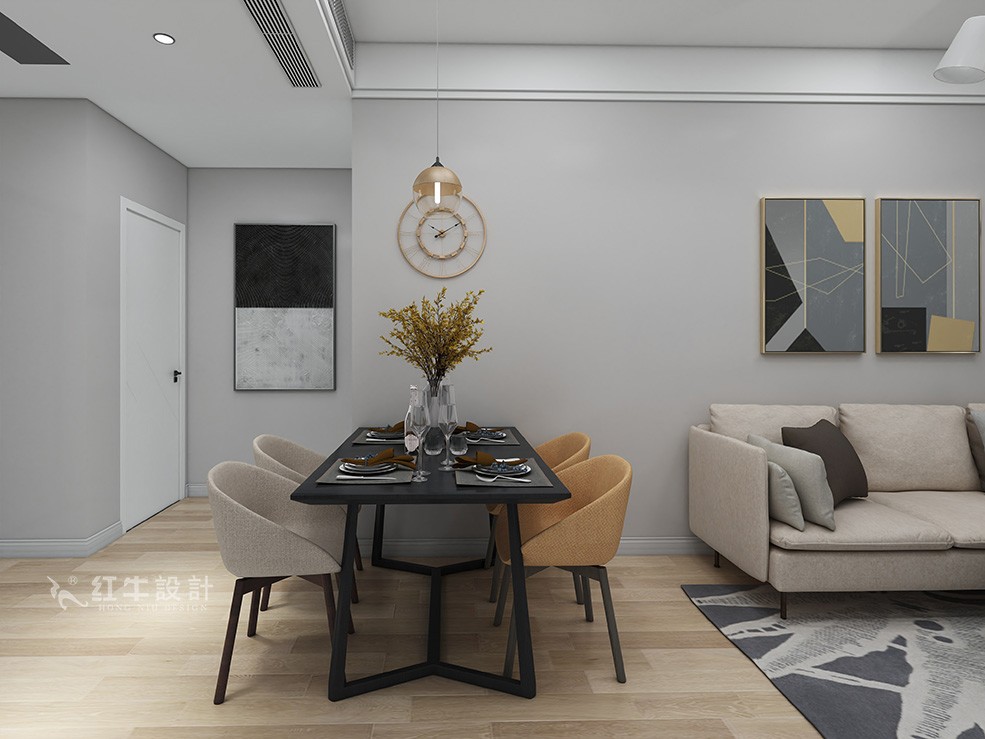3. 方案整體以暖色為主,整體以簡約時尚舒適,業主一個是教育工作者,一個是警官,平時工作比較忙,所以回家要放松放松心情。