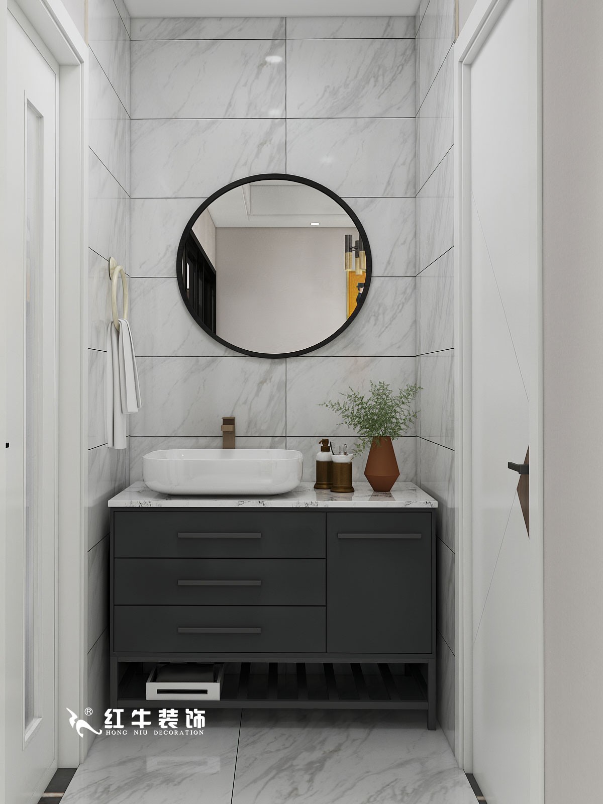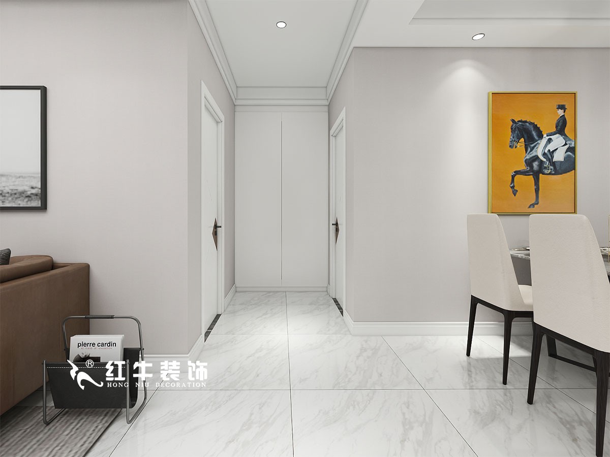 本案定義為現代簡約風格,在現代風格中也穿插了一些北歐的元素,墻面不再使用傳統的白色,使用了一些顏色中性的深灰色,和顏色相對鮮艷軟裝相互呼應,使得空間色彩有對比性,這樣的視覺反差,使得效果整體提升一個品味,空間不單調且舒適。